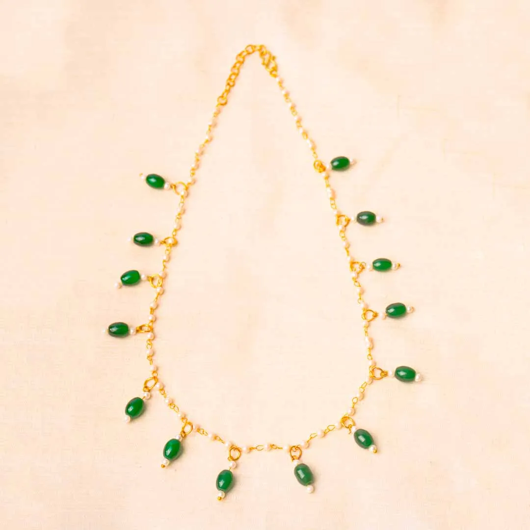 Beaded pearl Oval Golden Necklace