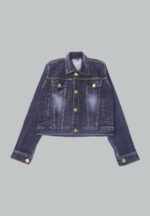 Classic colour name cropped denim jacket featuring details like a button-up front, regular collar, full sleeves and flap pockets. The cropped denim is a structured flattering fit. A perfect casual cool look. It pairs well with every outfit with its easy to go style and adds versitality.