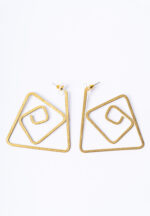 Geometric shaped abstract brass earring with textured finish and a push back post