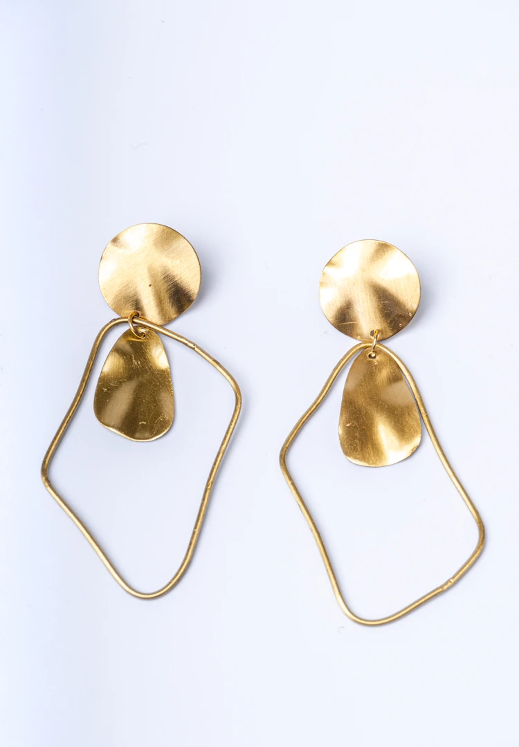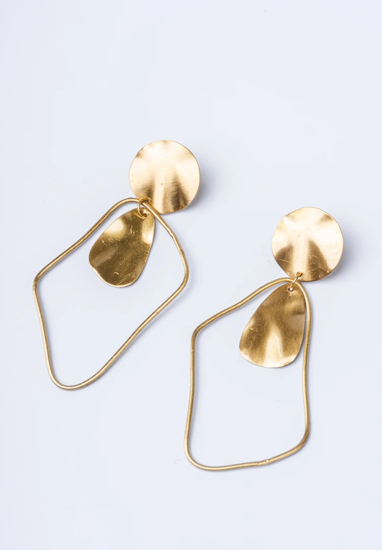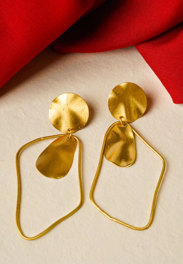 Brass Assymetrical Hollow Dangle Earrings