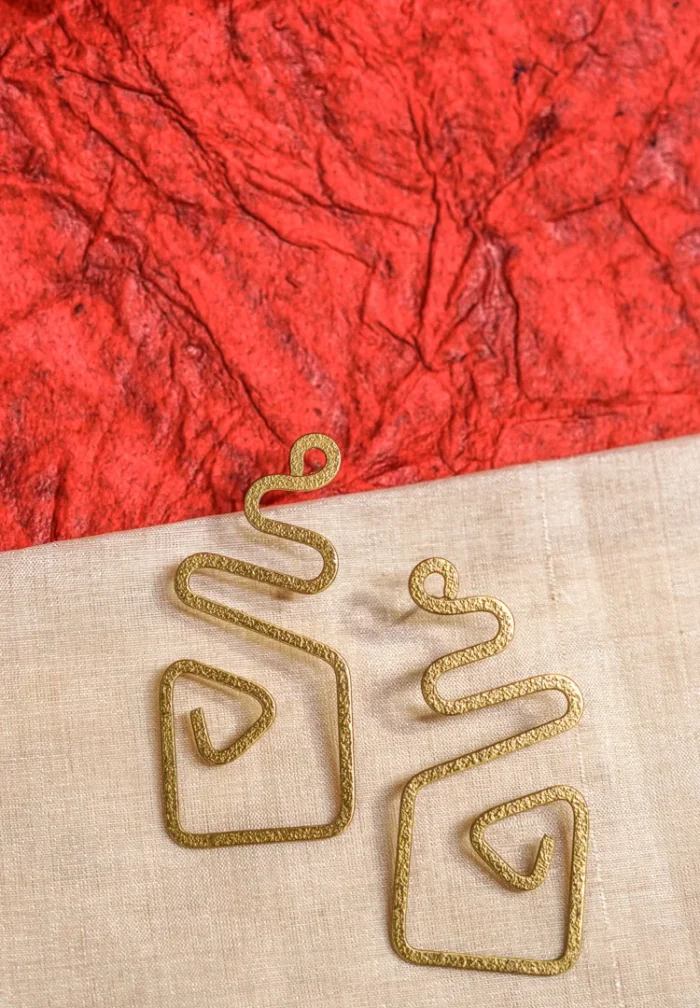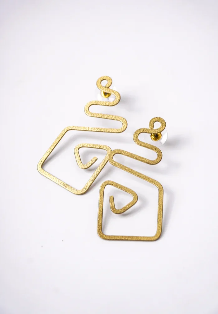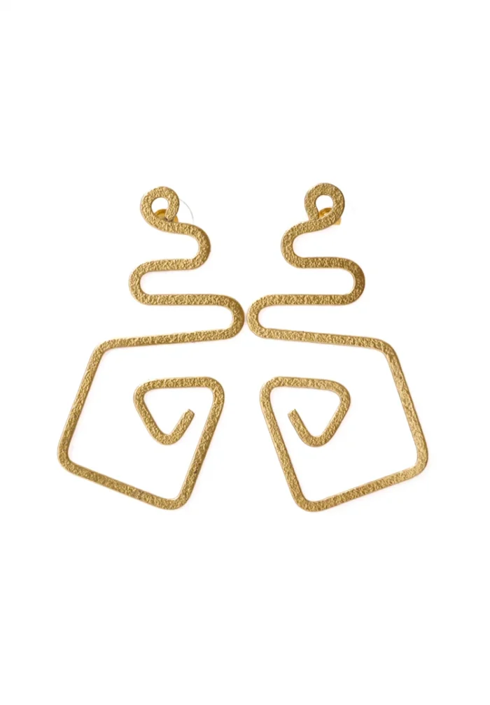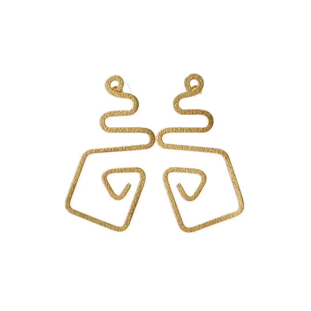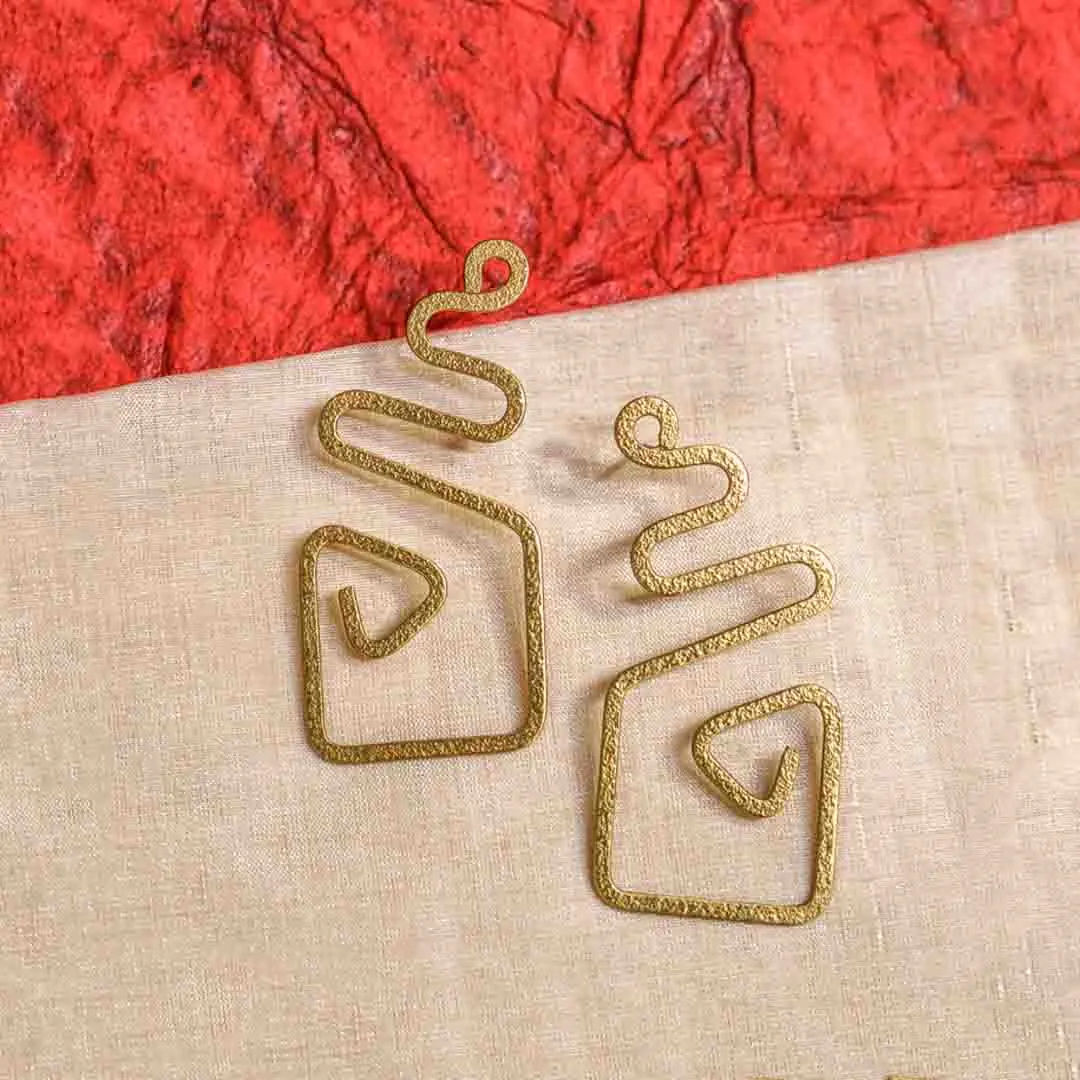 Brass Geometric Spiral Drop Earrings