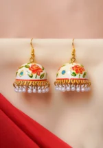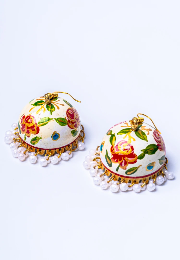 Meenakari square Mogra Pearls Dome Shaped Jhumka