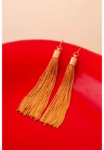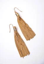 Gold-tone tassel earring with fine chain strands forming the tassel with a sleek cylindrical cap at top and push back closure