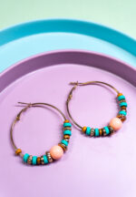 Turquoise and Peach Circular Beaded Hoop Earrings