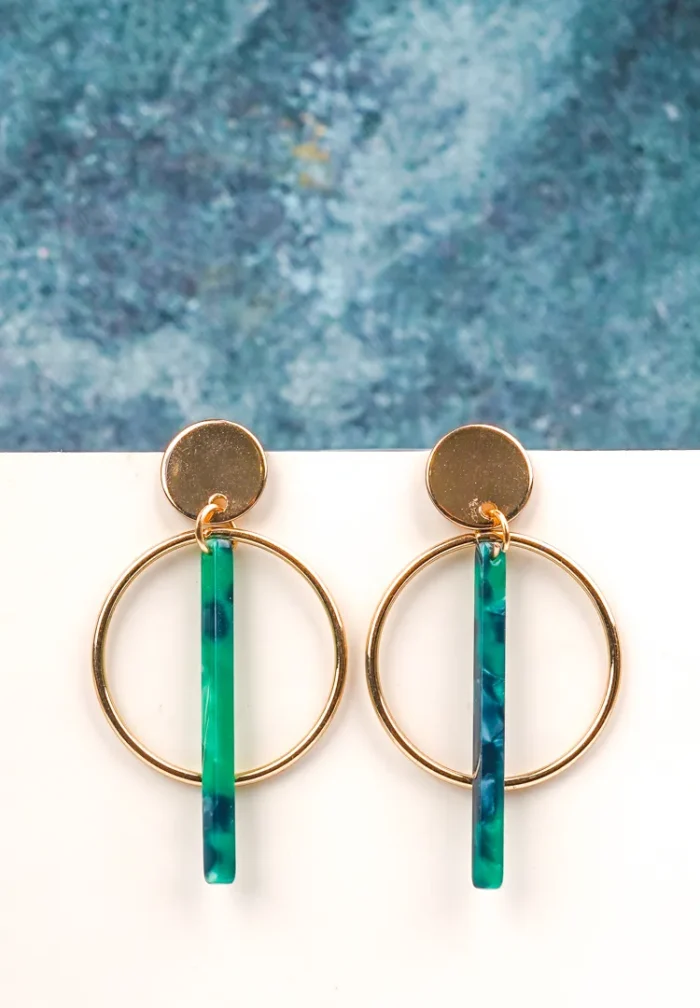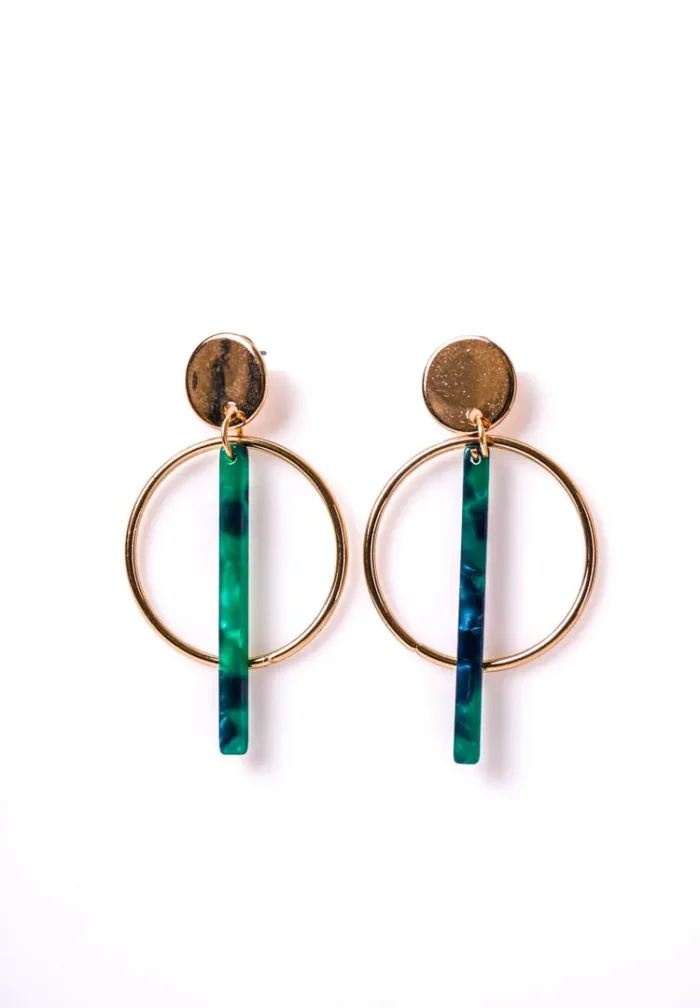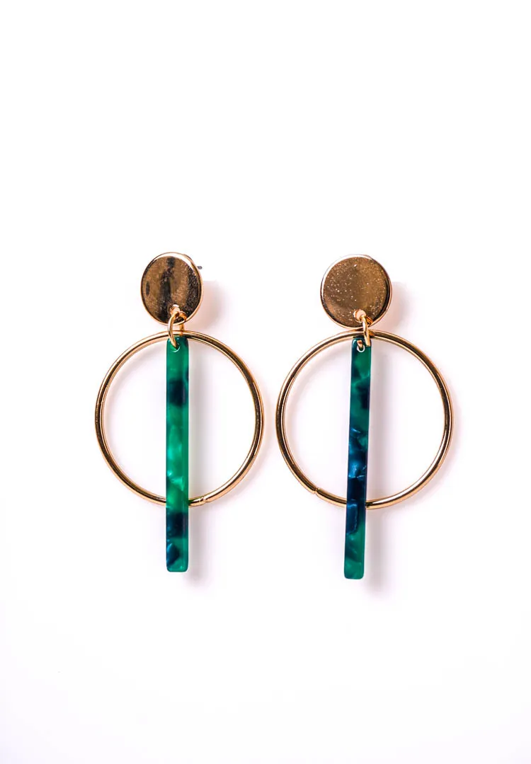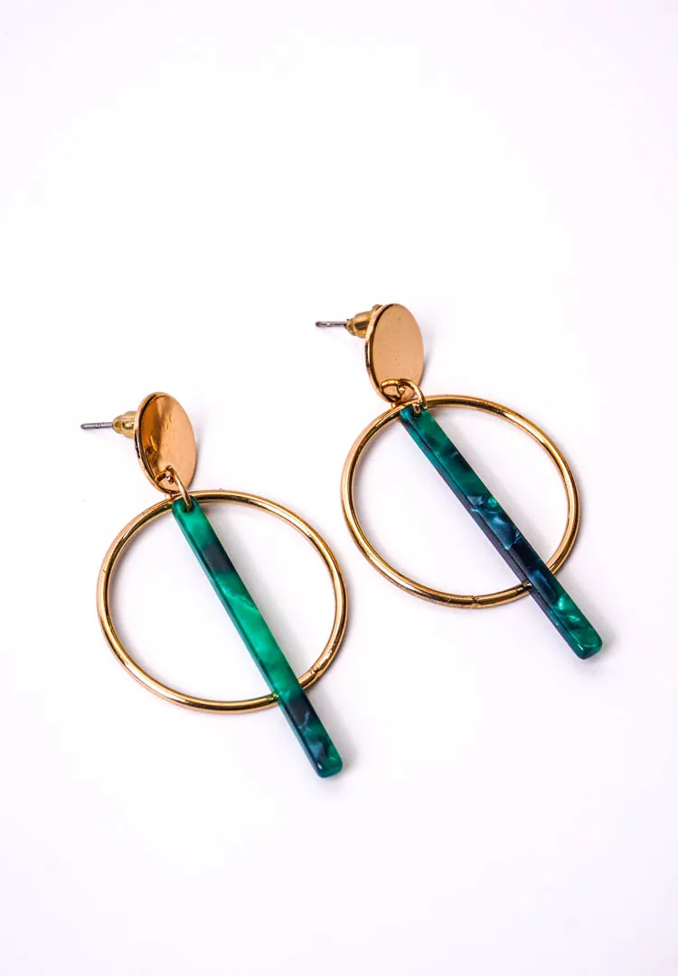 Circular Marble Green T-bar Earrings