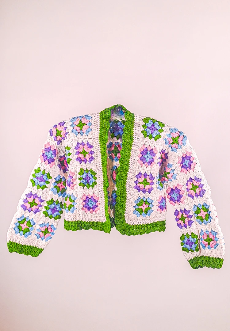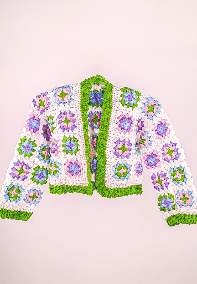 Colourful Pastel Meadow Patch Crochet Cardigan