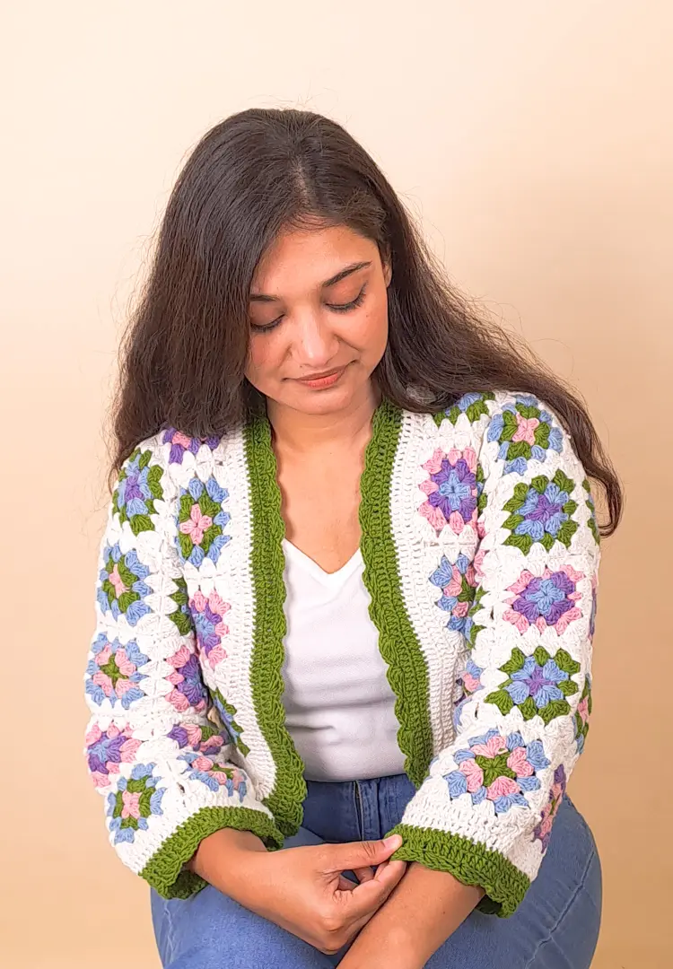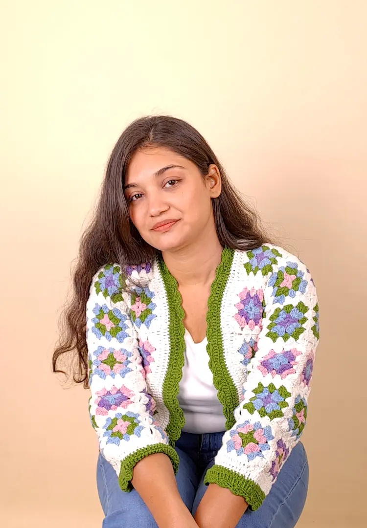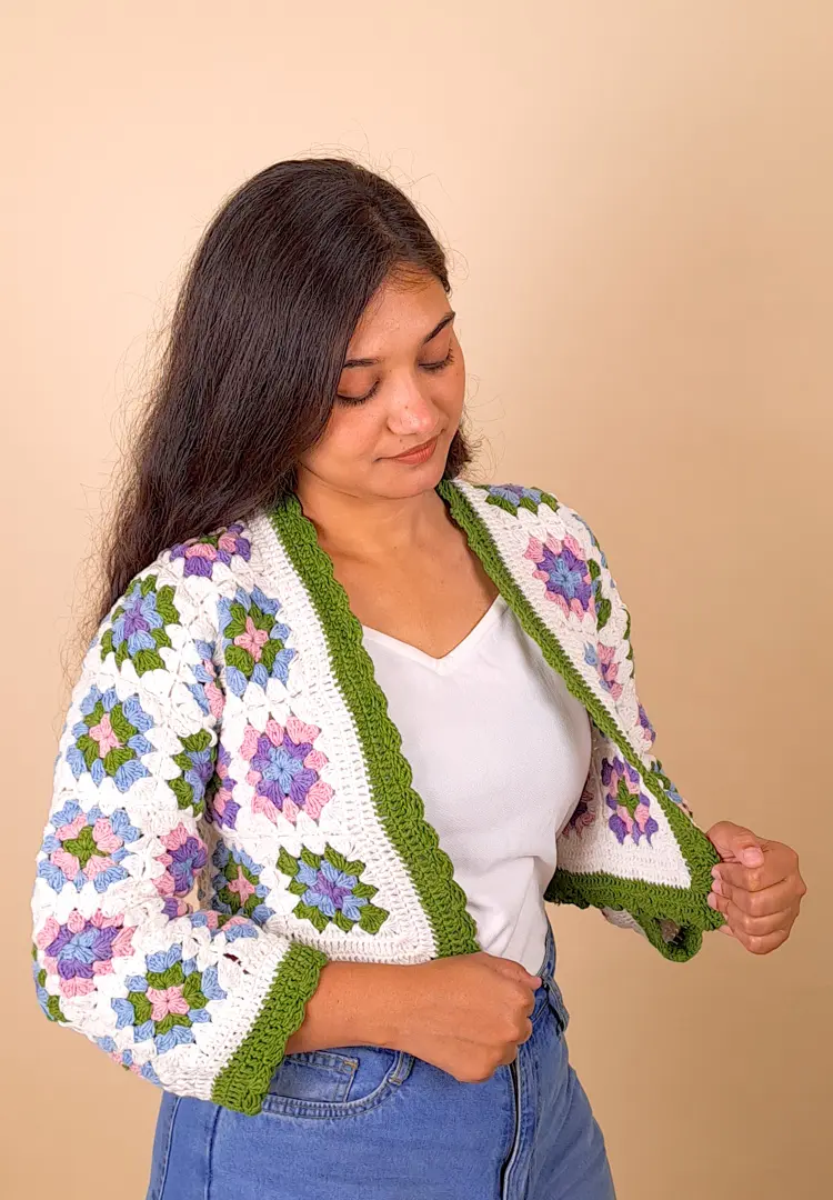 Step into soft, handcrafted charm with our Garden Patch Cardigan—a cozy, artisanal layer inspired by nature’s palette. Featuring beautifully crocheted patchwork panels in floral and garden-inspired motifs, this cardigan brings warmth, texture, and whimsical elegance to your everyday style.