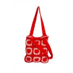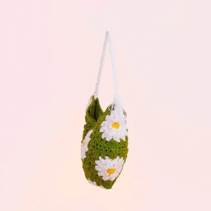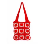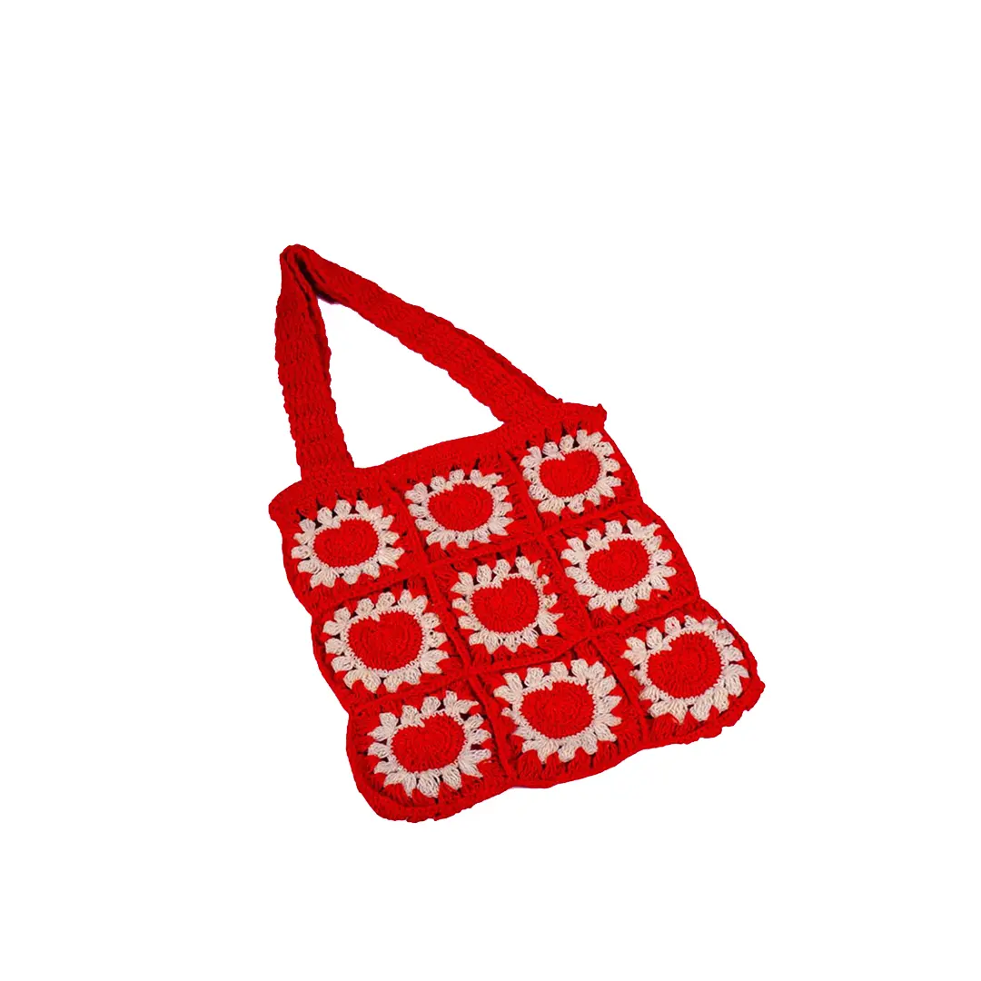Crochet Tote Bag featuring a sunburst granny square patterns with sturdy woven straps with a zipper lock