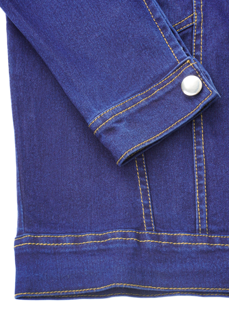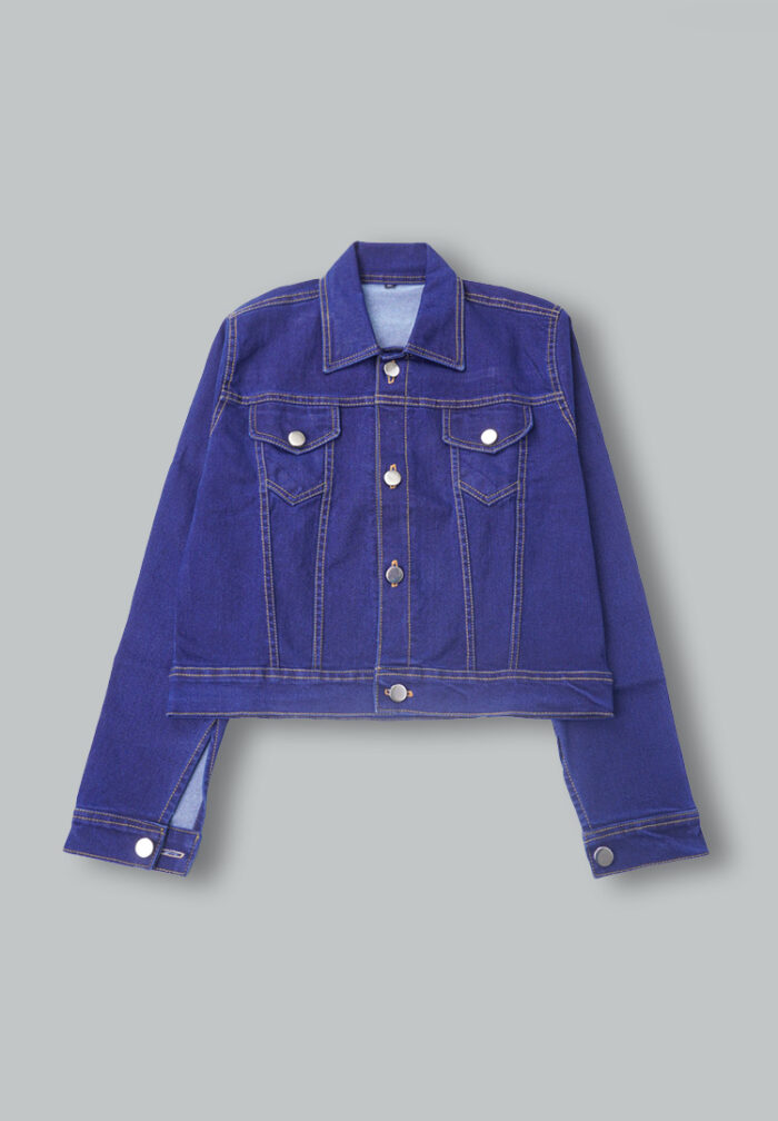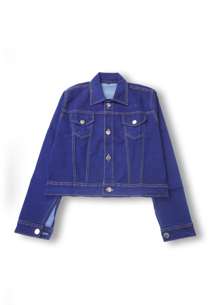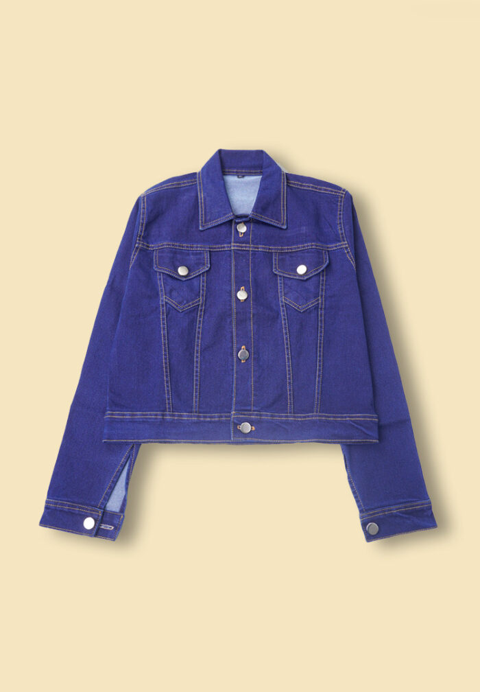 Classic colour name cropped denim jacket featuring details like a button-up front, regular collar, full sleeves and flap pockets. The cropped denim is a structured flattering fit. A perfect casual cool look. It pairs well with every outfit with its easy to go style and adds versitality.