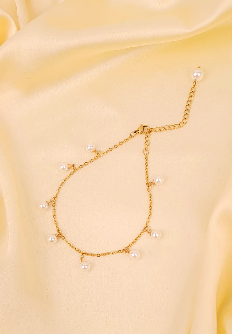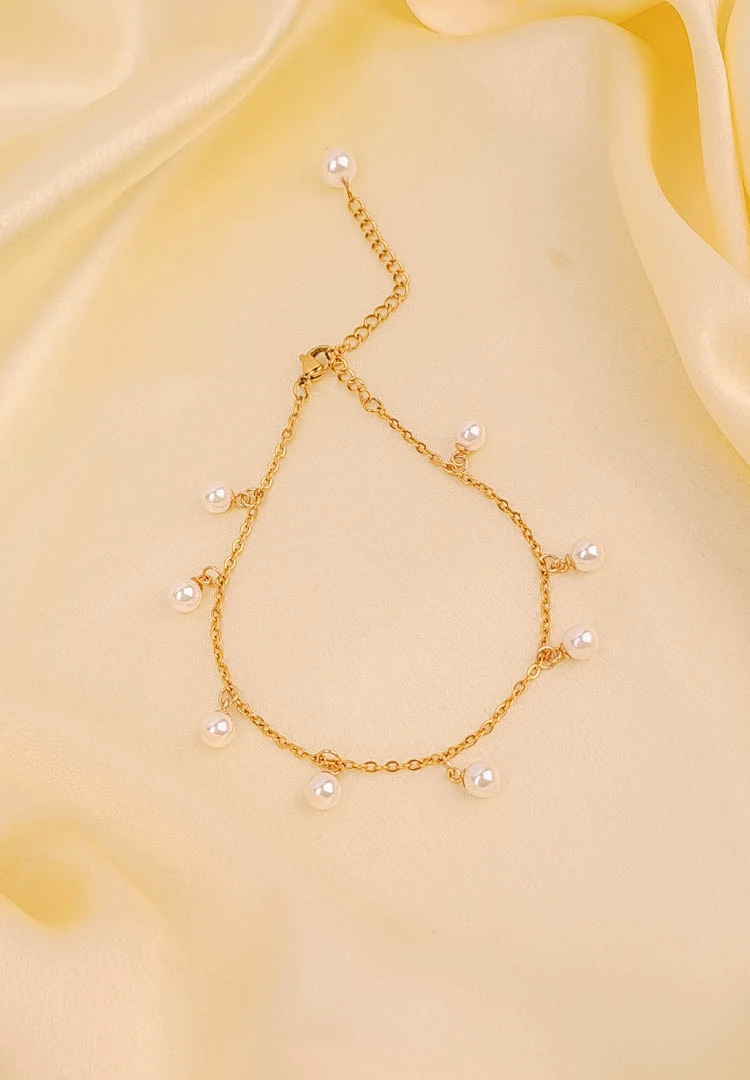 Elegant Golden Pearl Chain Bracelet