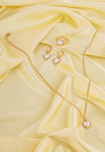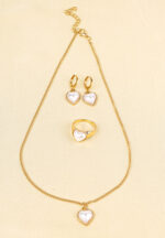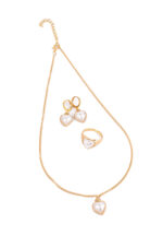 A Set of earring, ring and necklace features gold-toned heart shaped necklace, earrings and ring