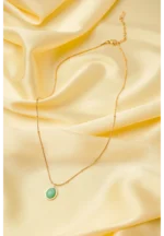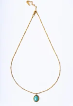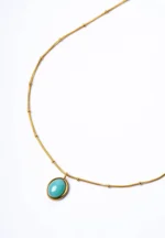 Golden Beaded Chain Turquoise Oval Pendant Necklace