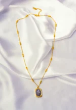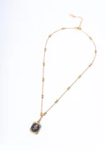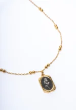 Golden Engraved Mirror Pendant Beaded Chain Necklace