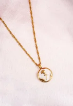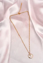 Golden Engraved Rose Shimmer Chain Pendant Necklace