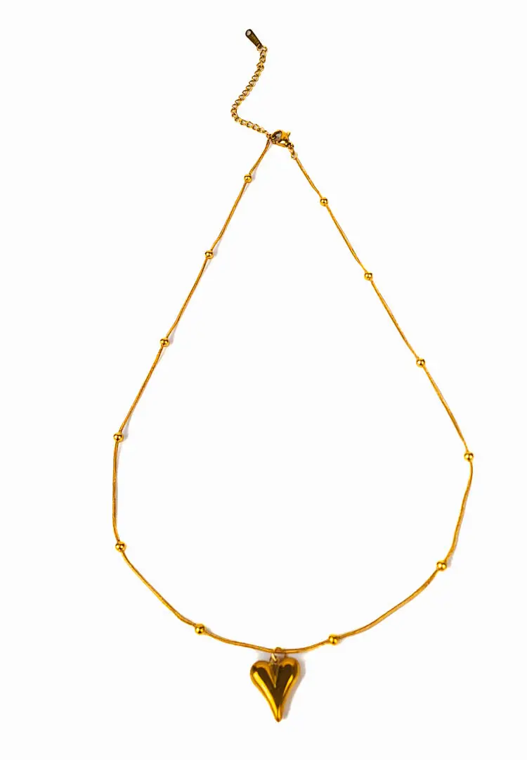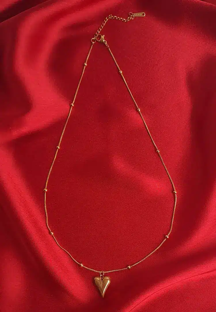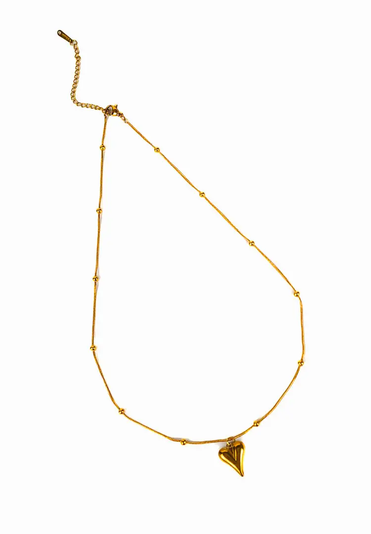 This Orbit Heart Satellite Necklace piece features a perfectly puffed, dainty gilded heart pendant suspended from a modern beaded satellite chain. The delicate gold-tone spheres are evenly spaced along the chain, catching the light as you move. Wear it solo for a subtle, minimalist statement, or layer it effortlessly with your other favorite chains. It’s the essential everyday necklace that adds a sweet touch of gold to any look.