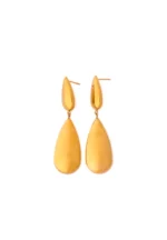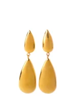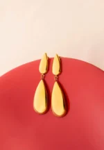 Two tier teardrop shaped dangle earring attached with a small loop with polished gold-tone finish and a push back closure