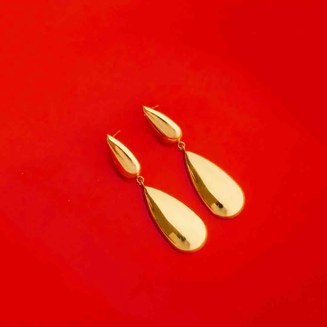 Golden Long Teardrop Dangle Earrings