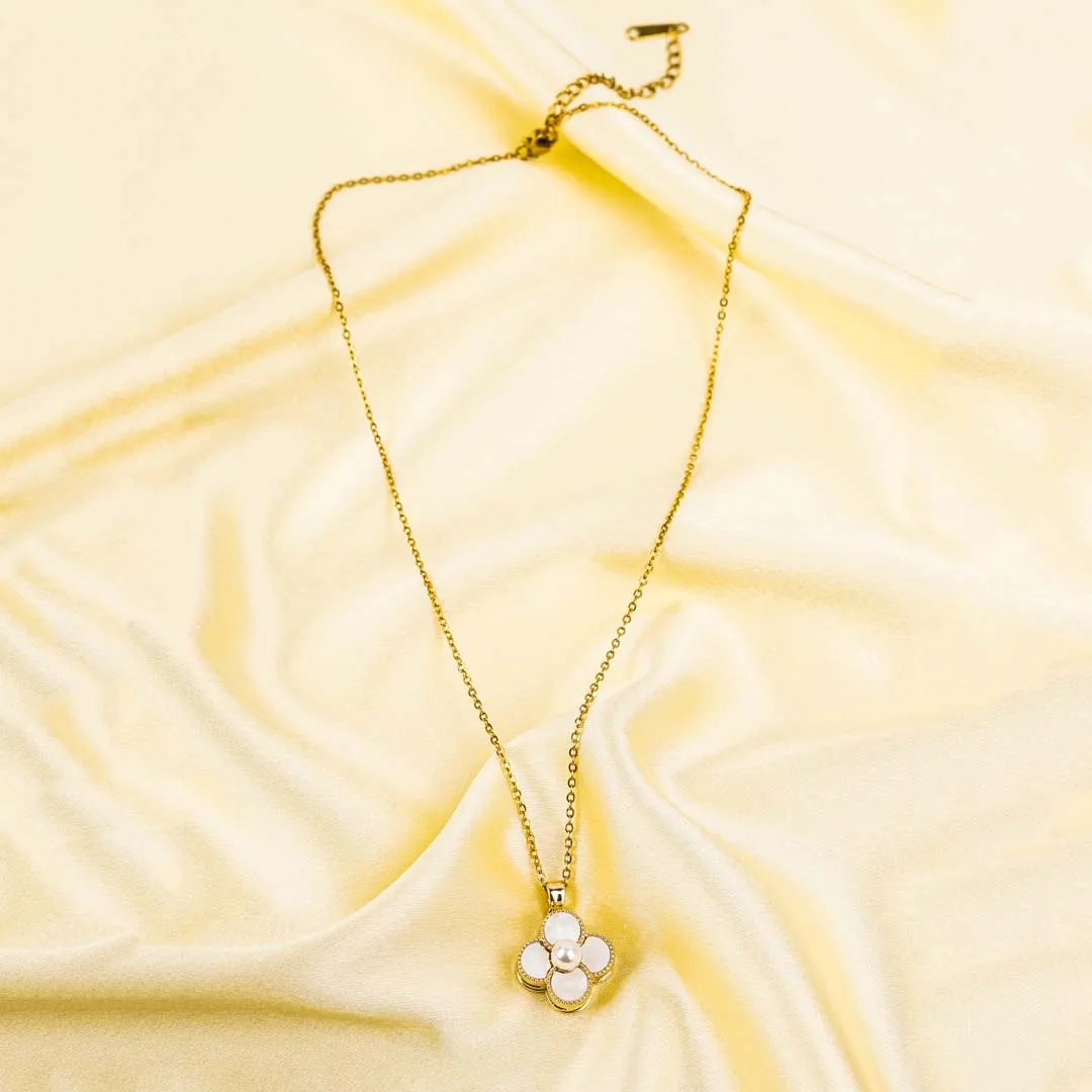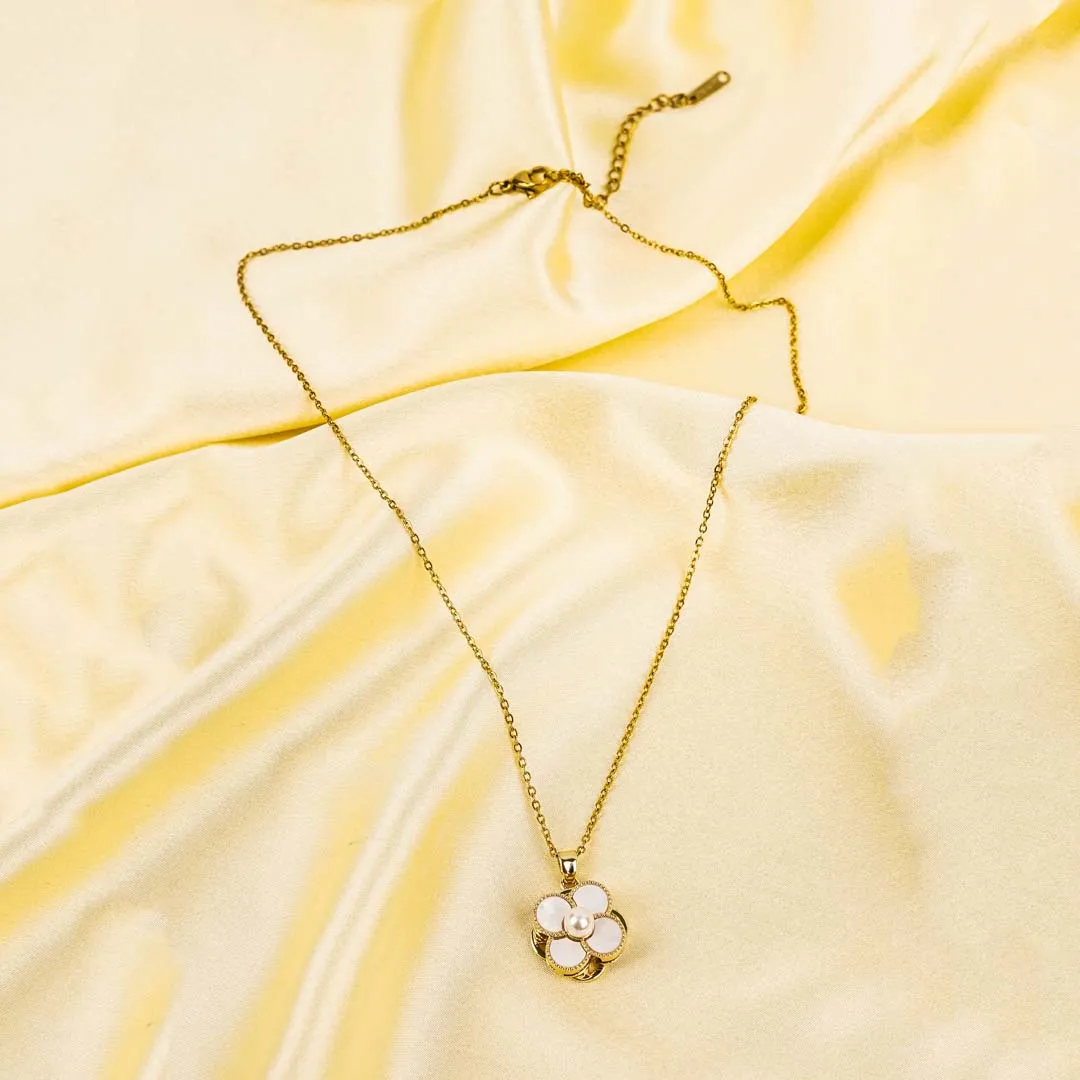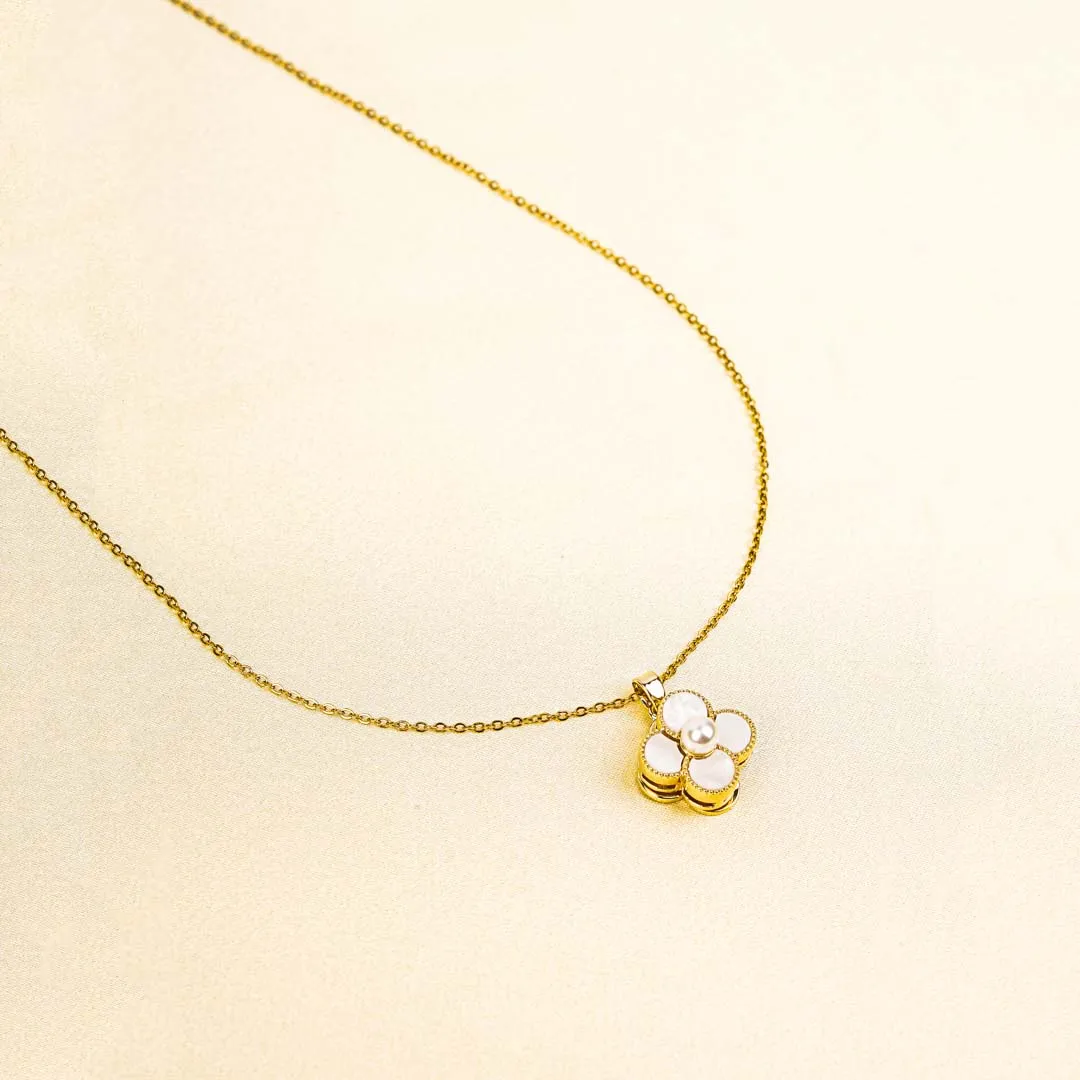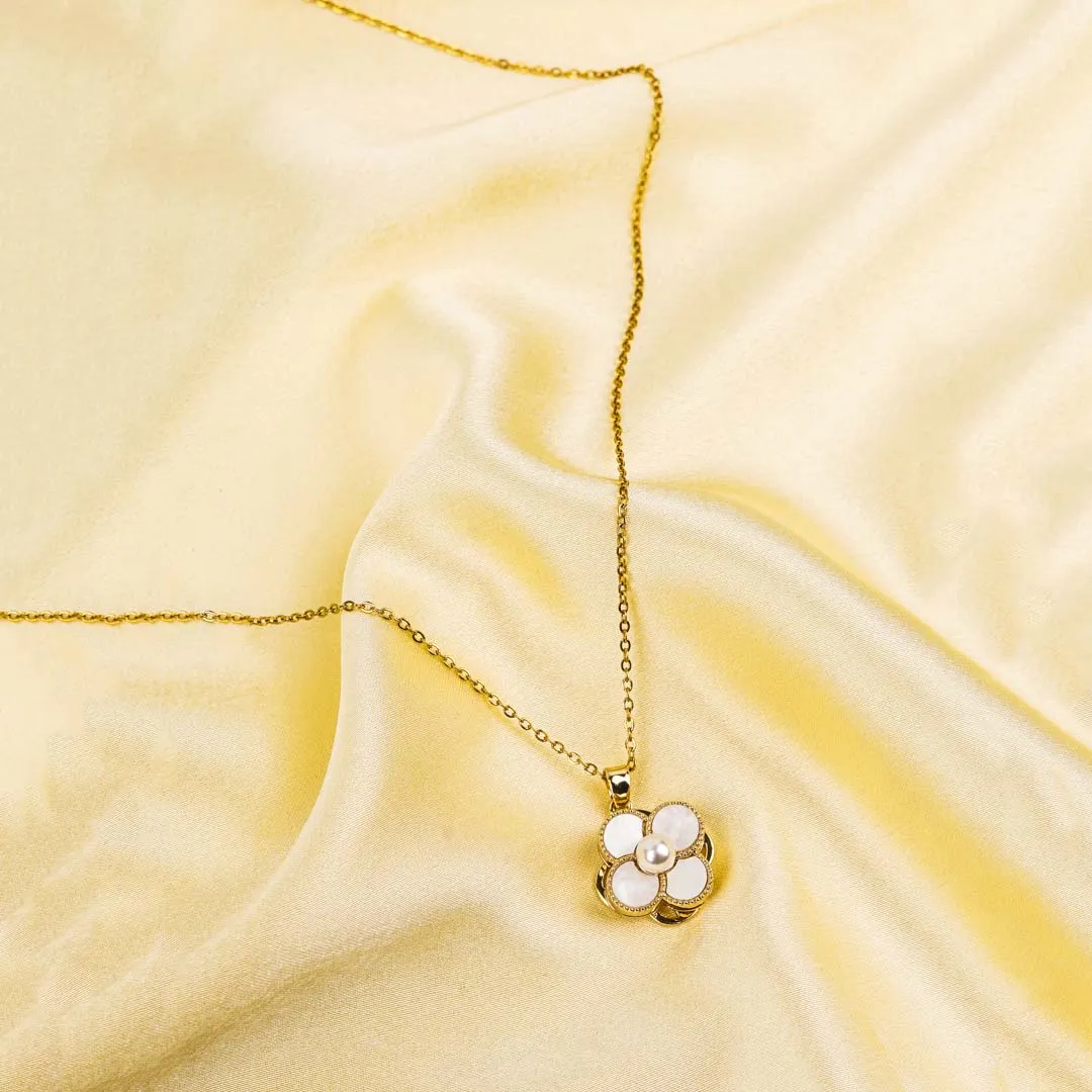 Golden Pearl Floral Spinning Necklace
