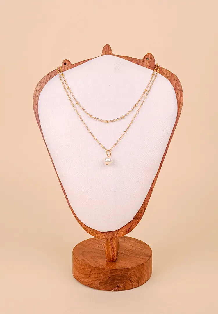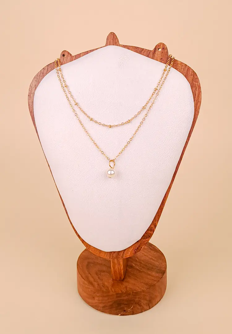 A minimalist, timeless piece featuring a luminous faux pearl on a polished gold-toned chain. Its simple gold bail lets the pearl shine as the elegant focal point. Versatile and refined, it enhances any neckline, works beautifully alone for a classic look, or can be layered for added style, making it a lasting wardrobe favorite.