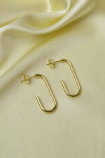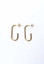 Elongated C shaped metal c hoop earring with polished gold-tone finished and a push back closure