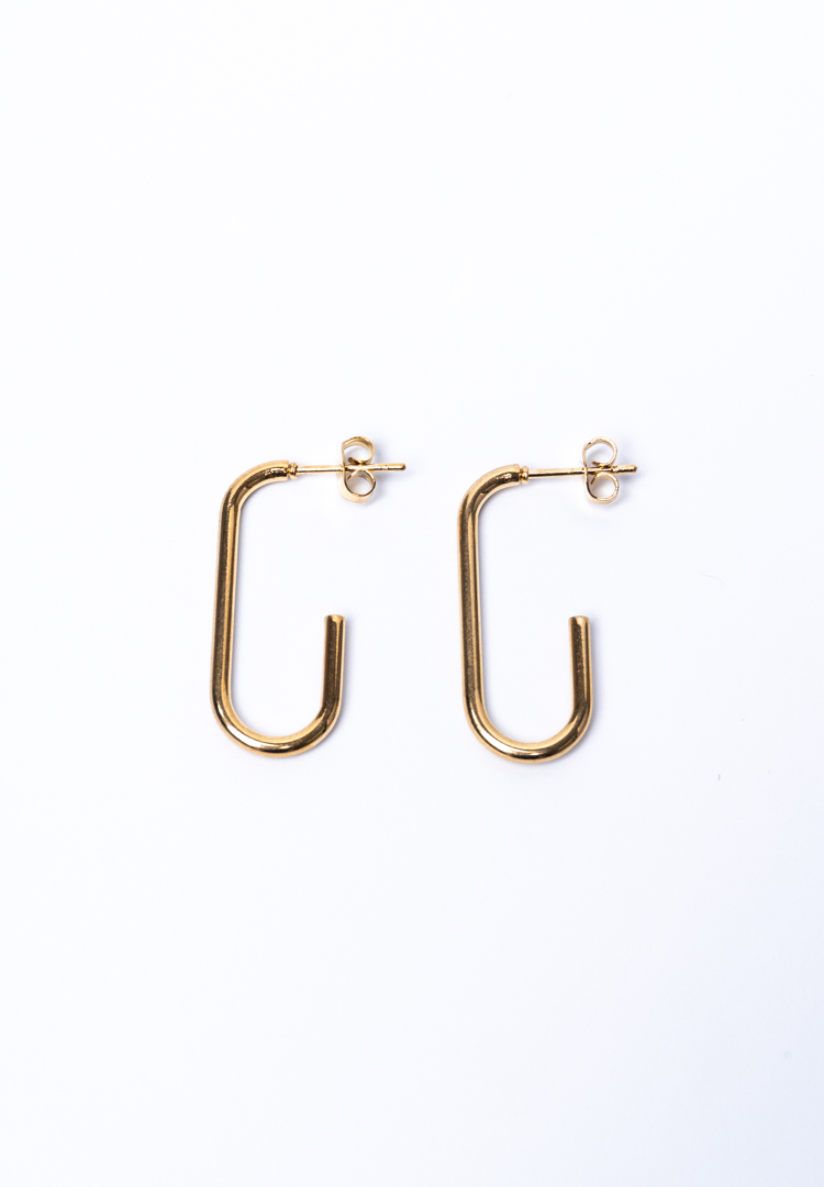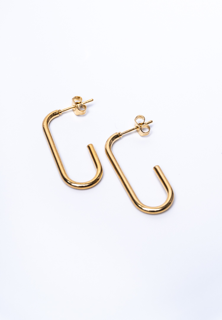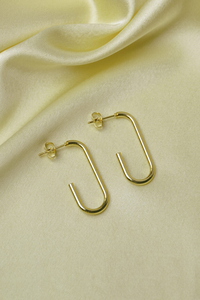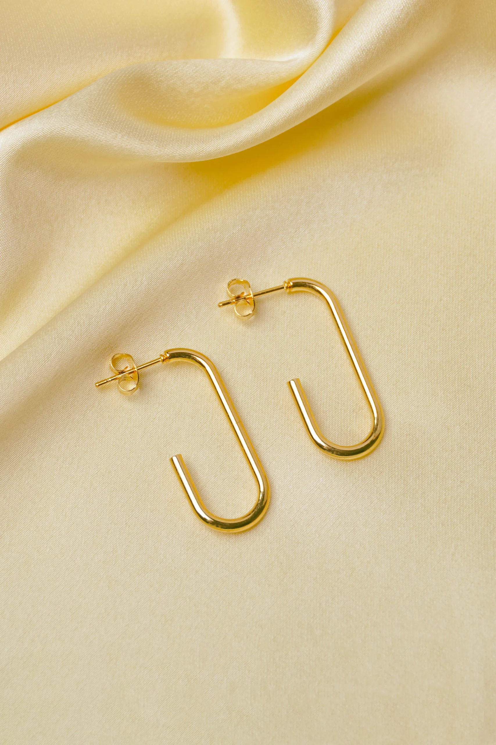 Elongated C shaped metal c hoop earring with polished gold-tone finished and a push back closure