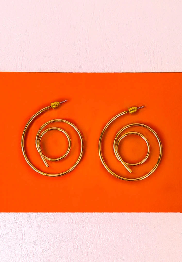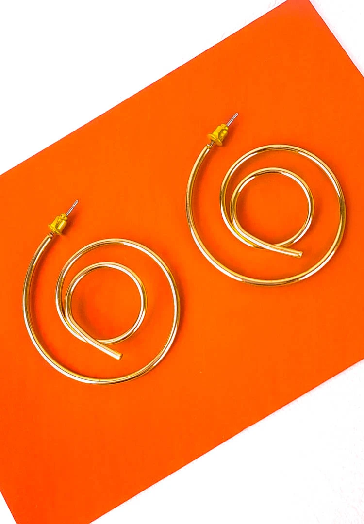 Spiral hoop earring with polisheed golden tone finish and push back closure
