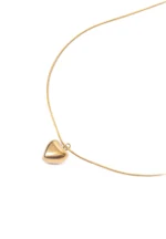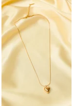 Delicate snake chain necklace with lobster claw clasp and gold-tone finish featuring a solid polished heart shaped pendant