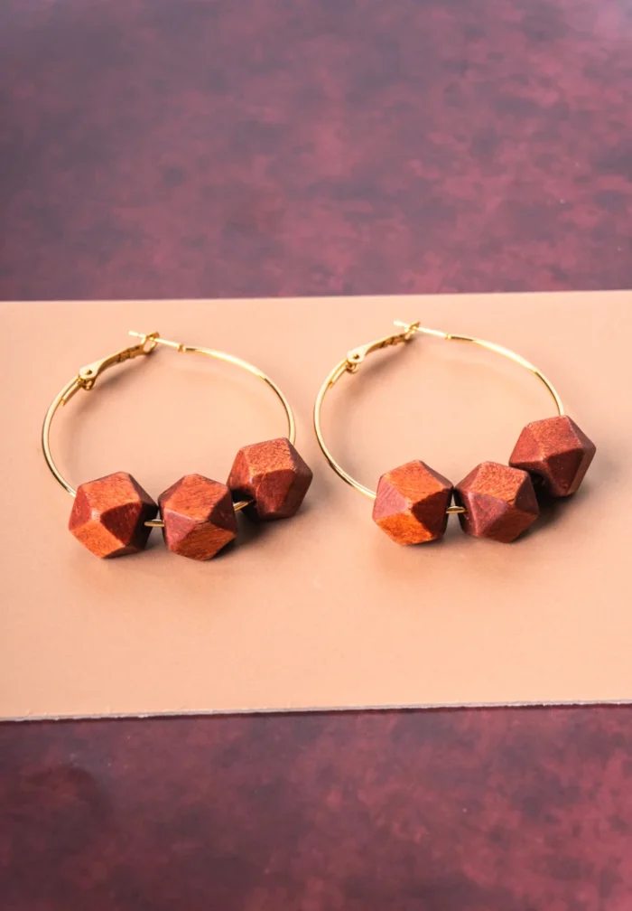 Hexagonal Wooden Cube Hoop Earrings