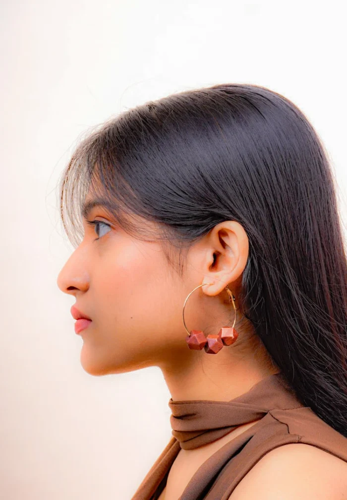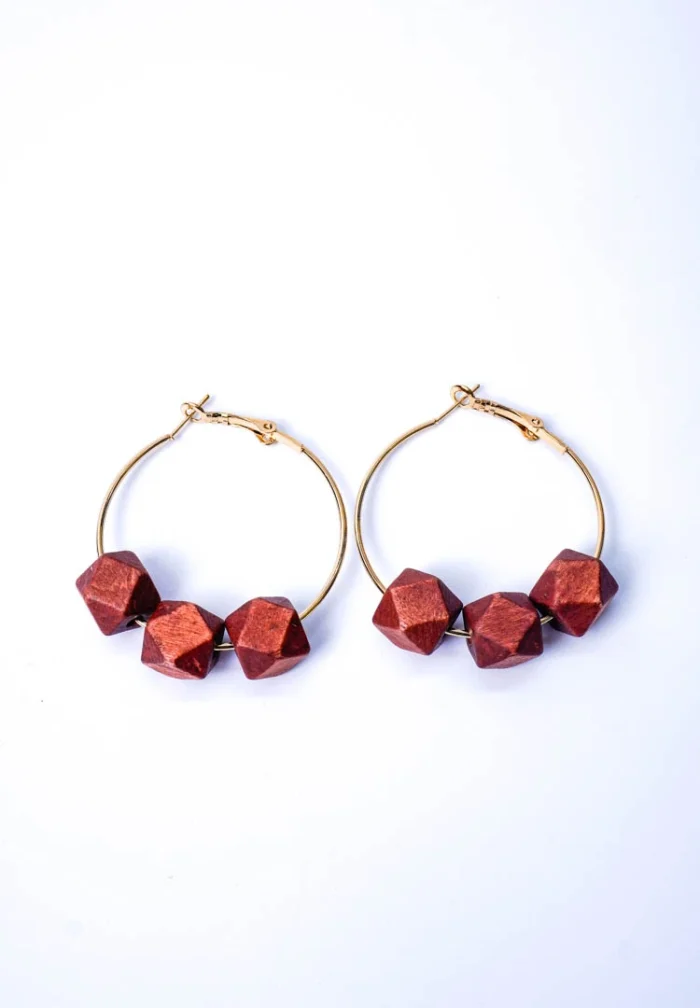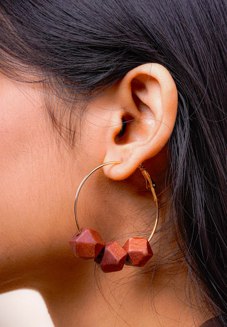 Hoop earrings with wooden beads with a latch back closure