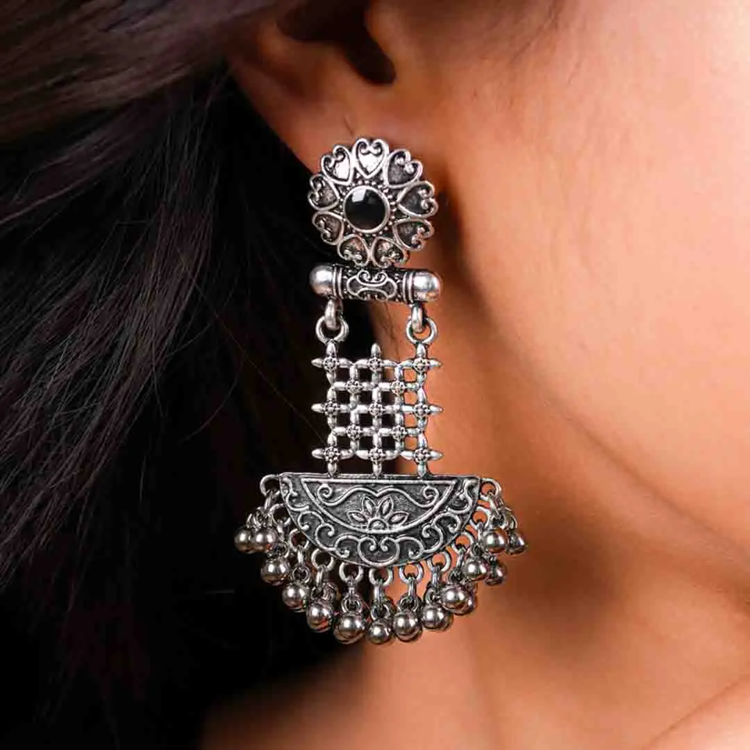 Intricate Oxidised Drop Earrings