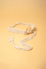 Macrame Off White Wooden Buckle Belt