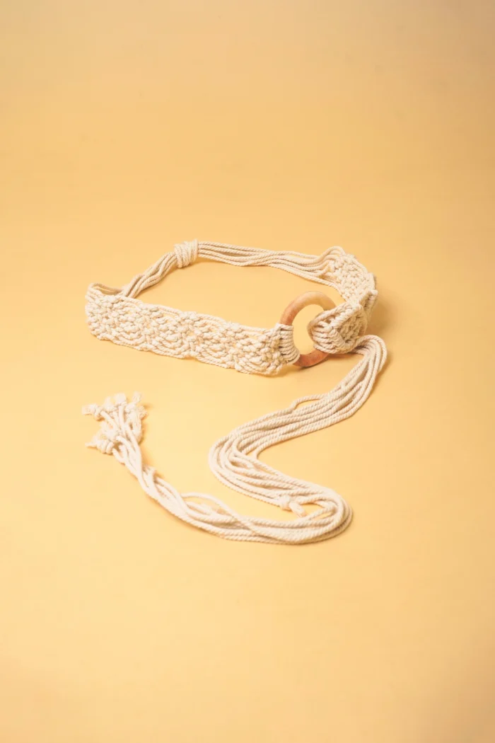 Macrame Off White Wooden Buckle Belt