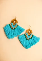 Macramé colourful tassel earrings crafted with soft cotton cords and a lightweight wood base. They give a bohemian elegance to your look exude a chic and rustic charm. These macrame tassel earrings add a unique touch to your jewellery collection.