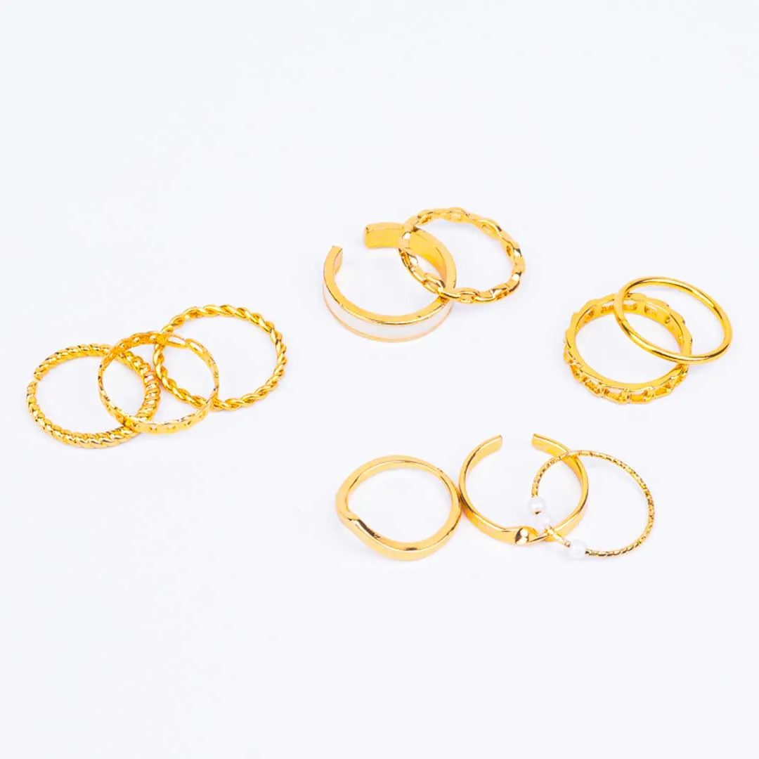 Pack of 10 Golden And Pearly White Chain Rings Combo