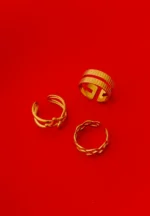 Pack of 3 Golden Inter Woven And Corrugated Design Rings