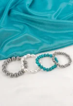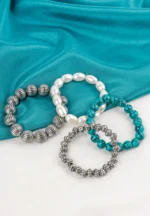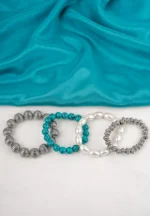 Pack of 4 Oxidised Pearl Turquoise Beaded Bracelt Combo