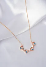 Delicate filled flat cable chain necklace with polished rose gold finish featuring geometric shaped folding magnetic Chain pendant with blue coloured inlay and a lobster claw clasp