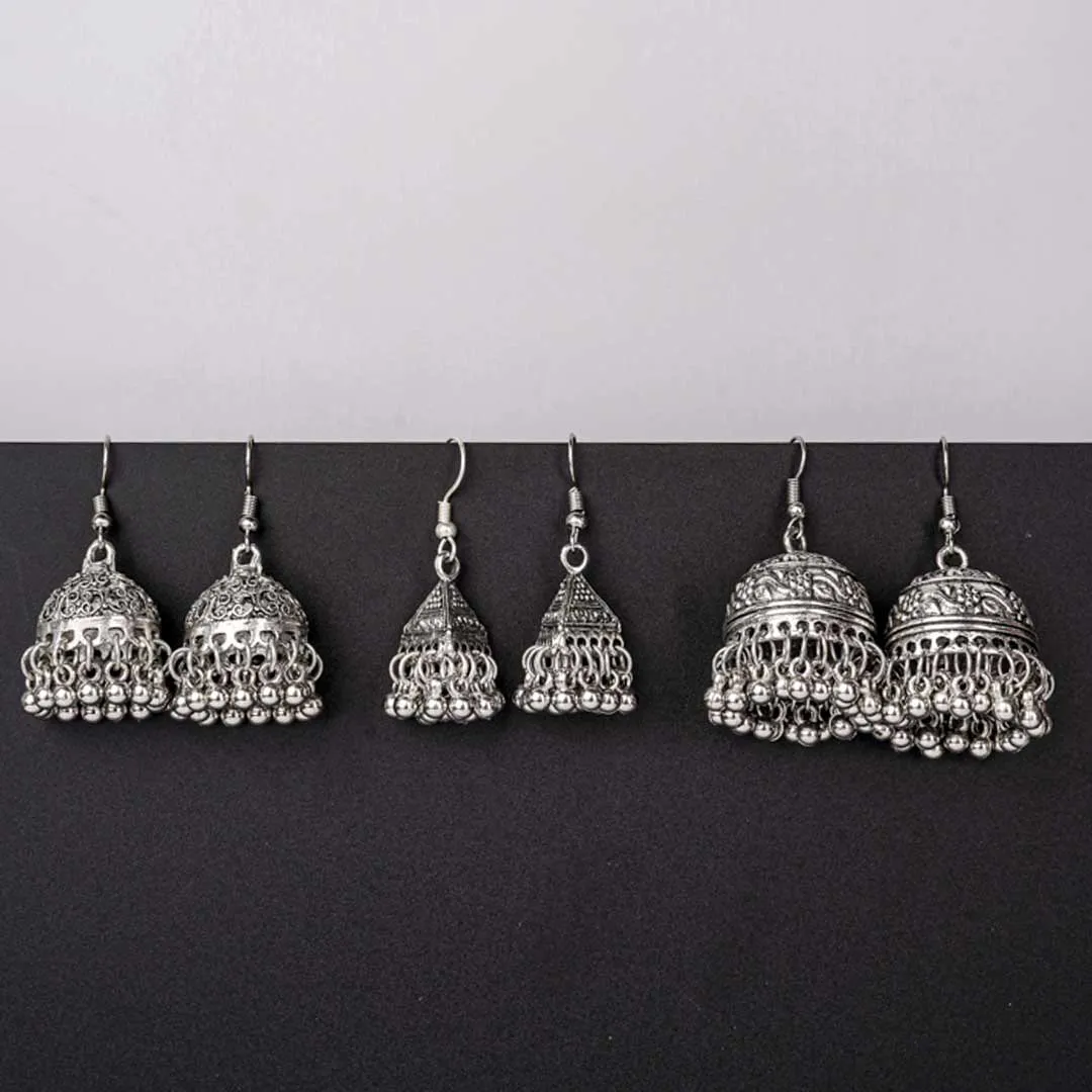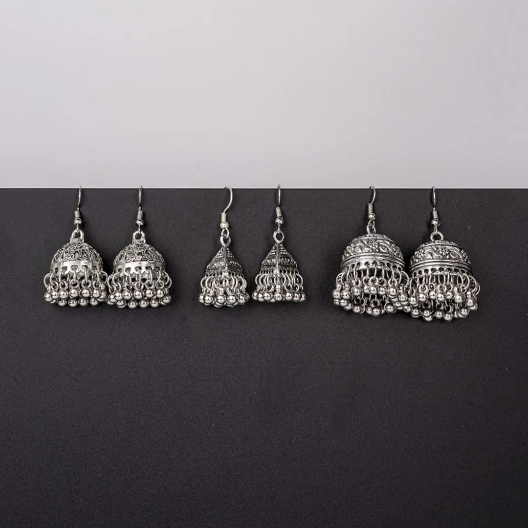 Set of 3 Oxidised Jhumka Earrings Combo