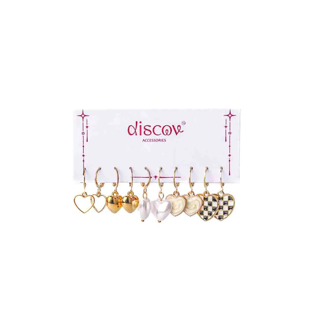This is a jewellery set of three earrings in heart shape along with golden hoops.