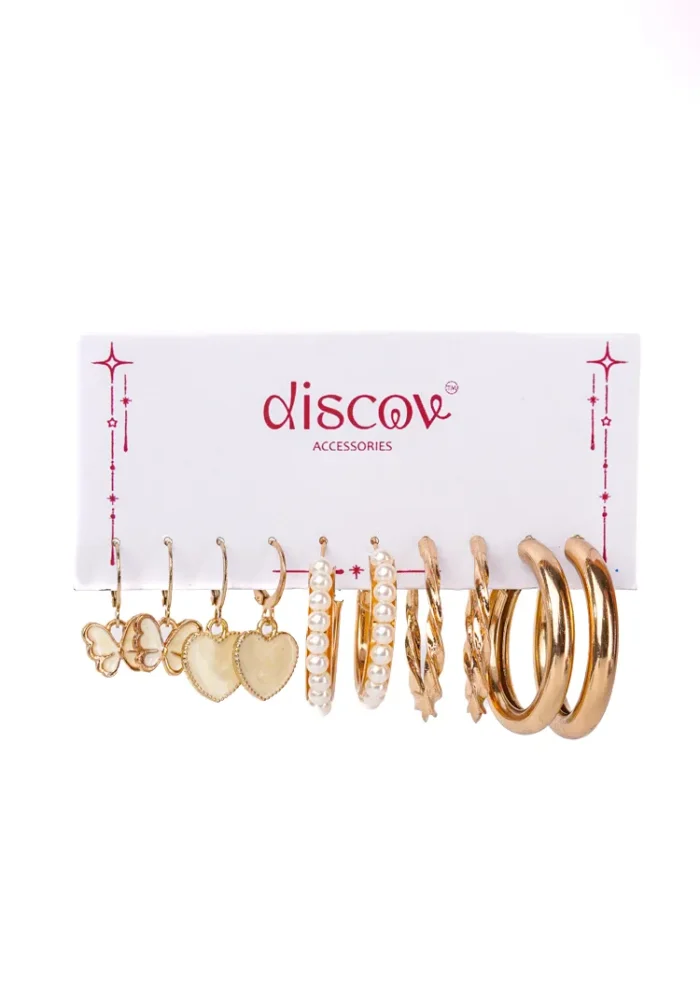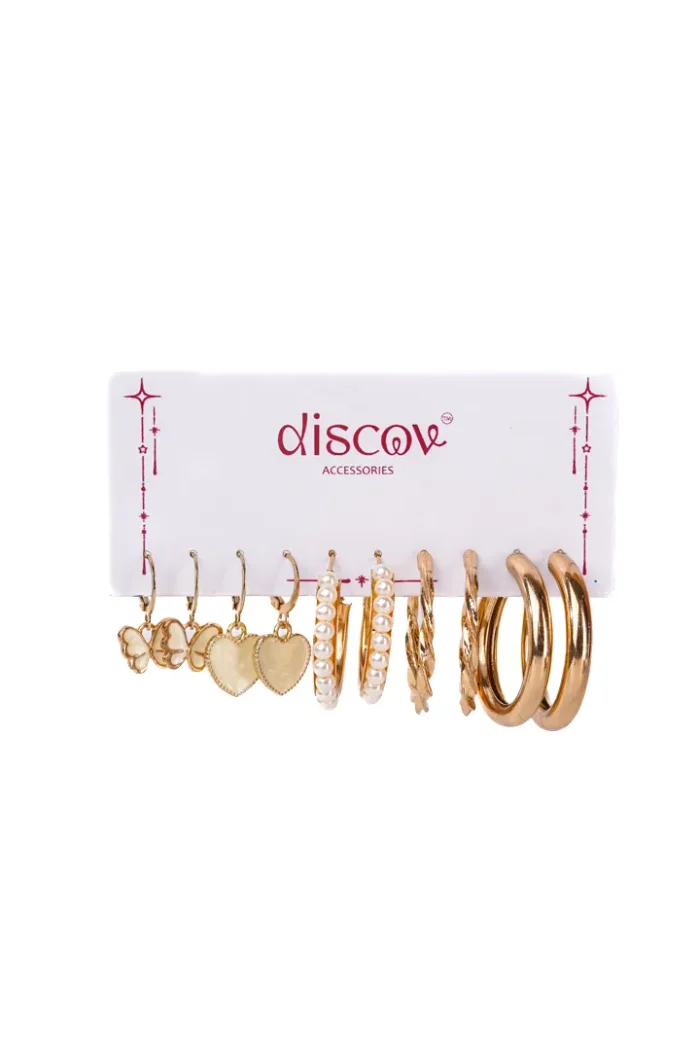 This is a jewellery set of five earrings in pearly white and golden colour.