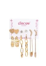 Set of 5 Checkered And Golden Chunky Earrings Combo