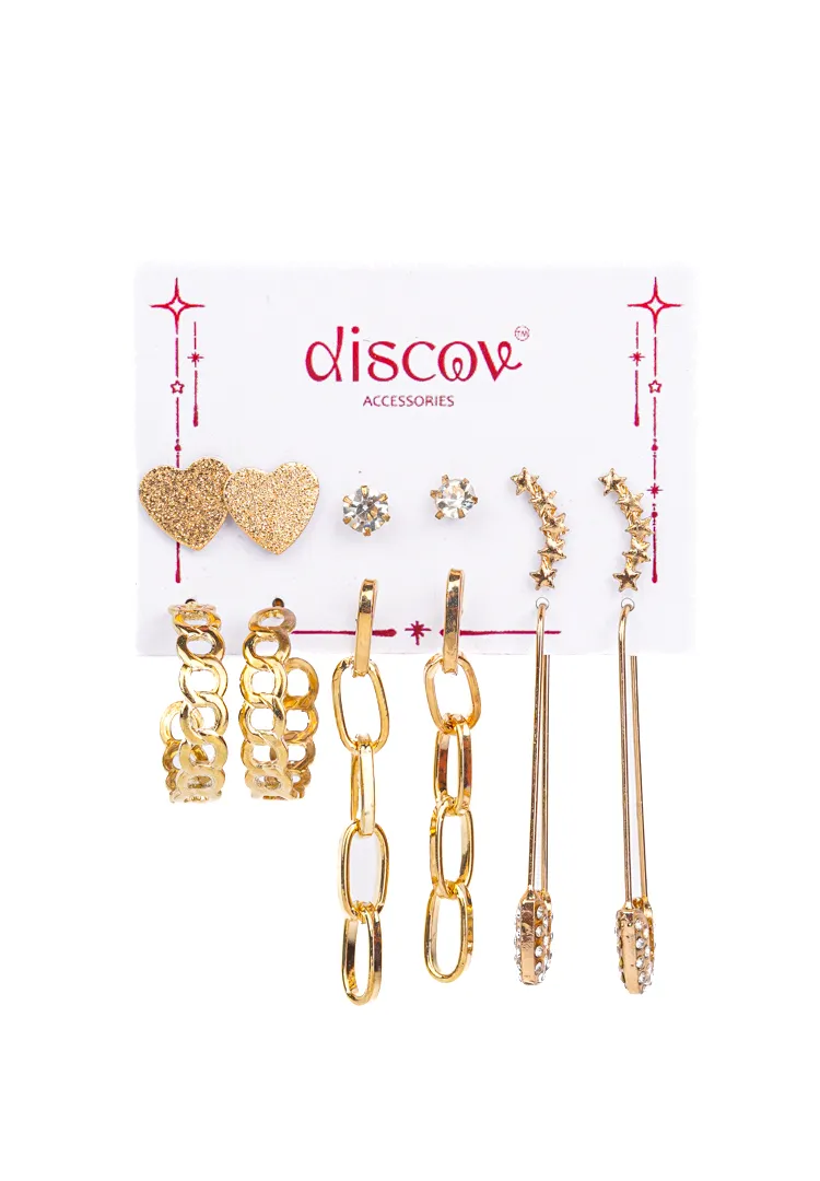 Set of 5 Checkered And Golden Chunky Earrings Combo