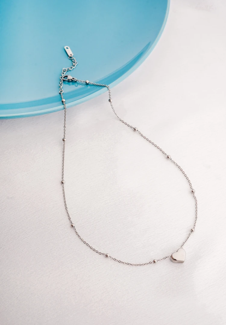 Silver Heart Beaded Chain Necklace