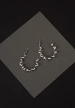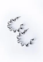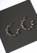 Twisted Spiral shaped c hoop earring with polished silver tone finish and a push back closure