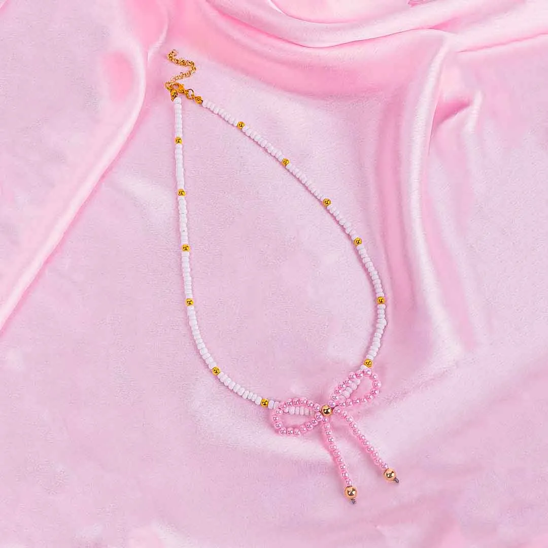 Sweetheart Beaded Bow Necklace