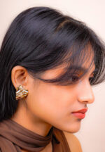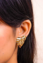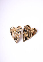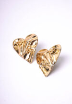 Asymmetrical textured heart shaped stud earring with gold-tone finish and wrinkle effect with push back post