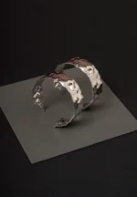 Hammered textured metal c hoop earring with polished silver tone finish and a push back post