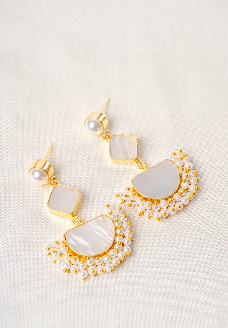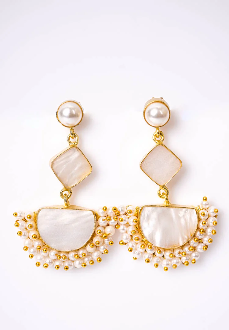 Traditional Geometric Natural Stone Pearl Mogra Earrings