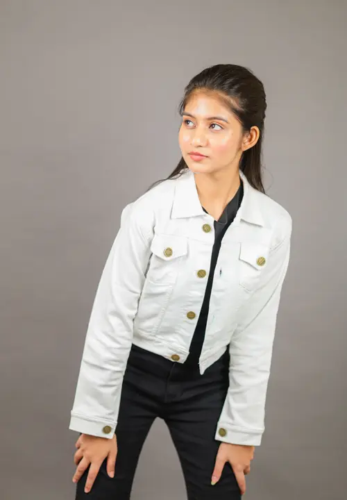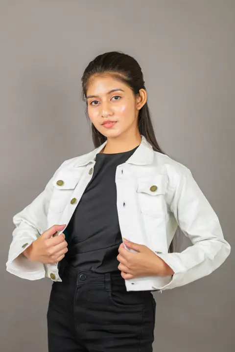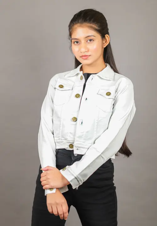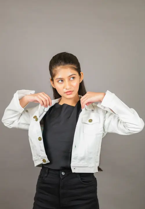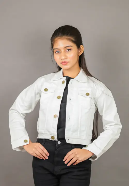 Classic colour name cropped denim jacket featuring details like a button-up front, regular collar, full sleeves and flap pockets. The cropped denim is a structured flattering fit. A perfect casual cool look. It pairs well with every outfit with its easy to go style and adds versitality.