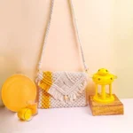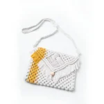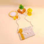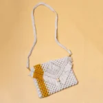 Yellow Striped White Macrame Sling Bag